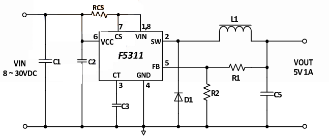 F5311是單片集成電路提供所有的活性功能降壓開關(guān)式穩(wěn)壓器能夠推高至2負(fù)載線和負(fù)載調(diào)節(jié)的特點。8 v的輸入電壓范圍寬40 v F5311適合調(diào)節(jié)權(quán)力從各種各樣的來源包 括24 v工業(yè)用品和汽車電池。提供了一個完整的設(shè)計使用最小數(shù)量的外部組件。還建立了在可編程軟啟動輸入過流保護、輸出短路保護和熱關(guān)機功能。5V 1A 小體積車充方案