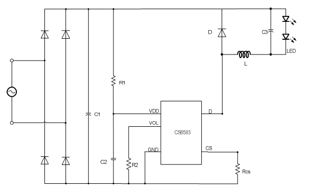 CS6583是一款單電感非隔離降壓型LED恒流驅動電路,工作在電感電流臨界連續模式下,適用于85Vac-265Vac全電壓輸入范圍 ,電路的工作電流極低,只需要很少的外圍元件,在較大的范圍內,系統的輸出電流與電感量無關,電路具有優異的線性調整率和負載調整率,降壓系統成本。