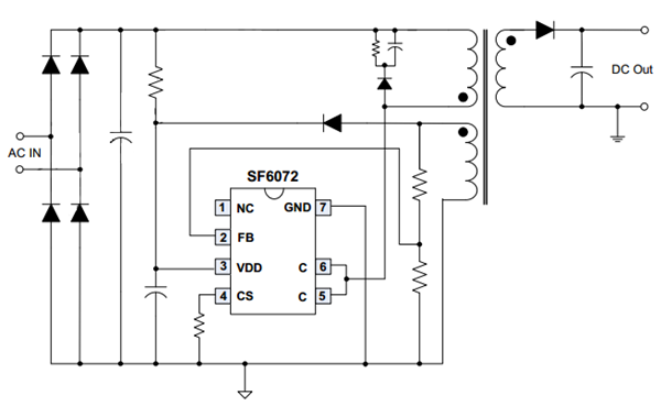 SF6072是高精度原邊反饋控制(PSR)的恒壓恒流(CV/CC)控制器。