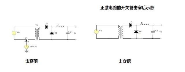 對(duì)于正激電路而言,同樣開關(guān)管擊穿短路,對(duì)負(fù)載而言,只是失去了供電的電源而斷電,不會(huì)對(duì)負(fù)載本身造成其它影響。