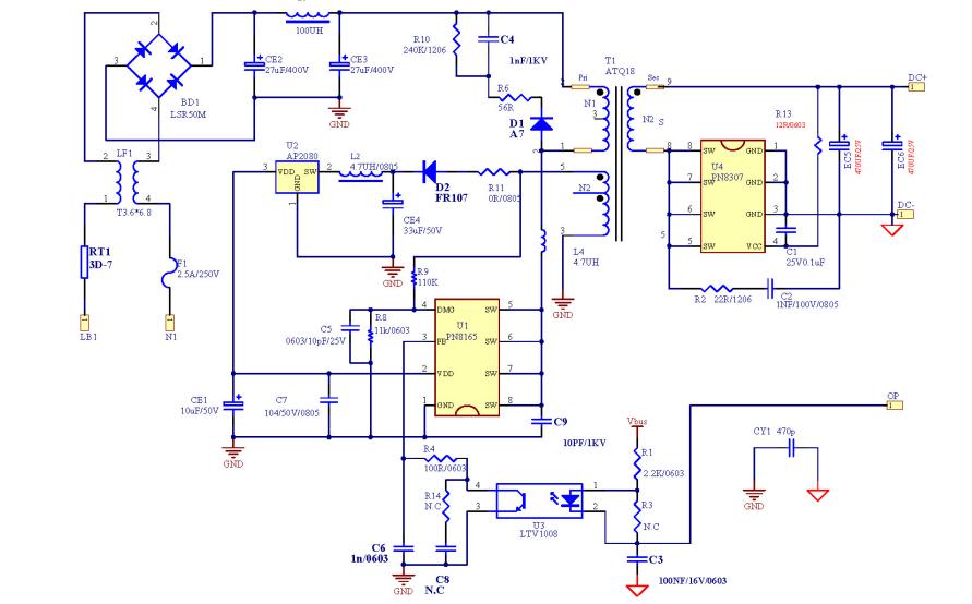 - PN8000無電感負壓輸出AC-DC非隔離超精簡方