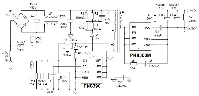 - PN8036M寬輸出范圍非隔離ac/dc電源芯片