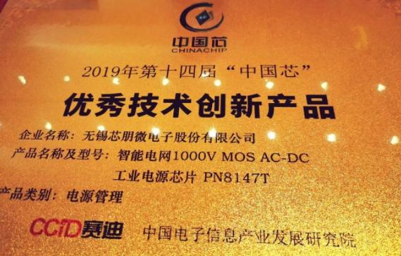 2019年10月25日第十四屆“中國芯”集成電路產(chǎn)業(yè)促進大會在青島舉行,芯朋微電子PN8147T【智能電網(wǎng)1000V MOS AC-DC工業(yè)電源芯片】榮獲“優(yōu)秀技術創(chuàng)新產(chǎn)品獎”!是本次【中國芯】在電源管理領域評比大獎中僅有的2顆獲獎芯片之一。
