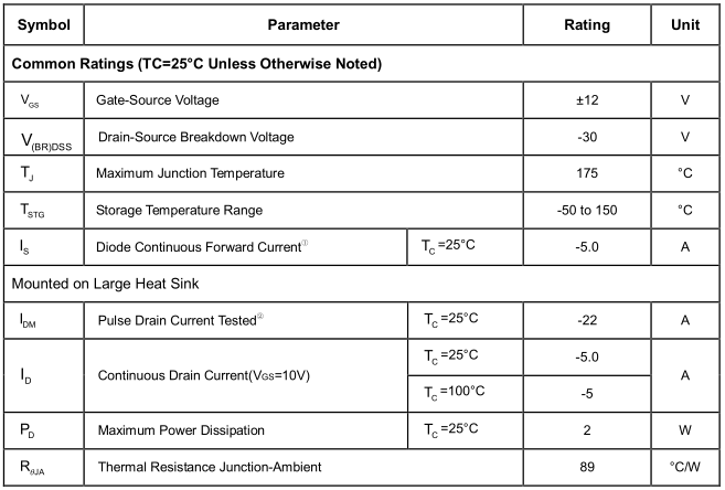 4803mos管-30V / -5A雙P溝道高級功率MOSFET